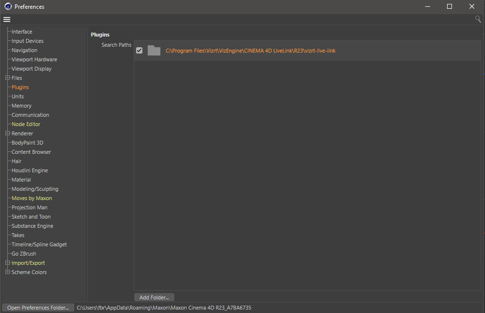 Example: C:\Program Files\MAXON\CINEMA 4D R17\plugins\vizrt-live-link