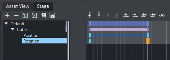 In the menu that shows, click Transformation > Rotation. A rotation channel and two Key Frames are added.