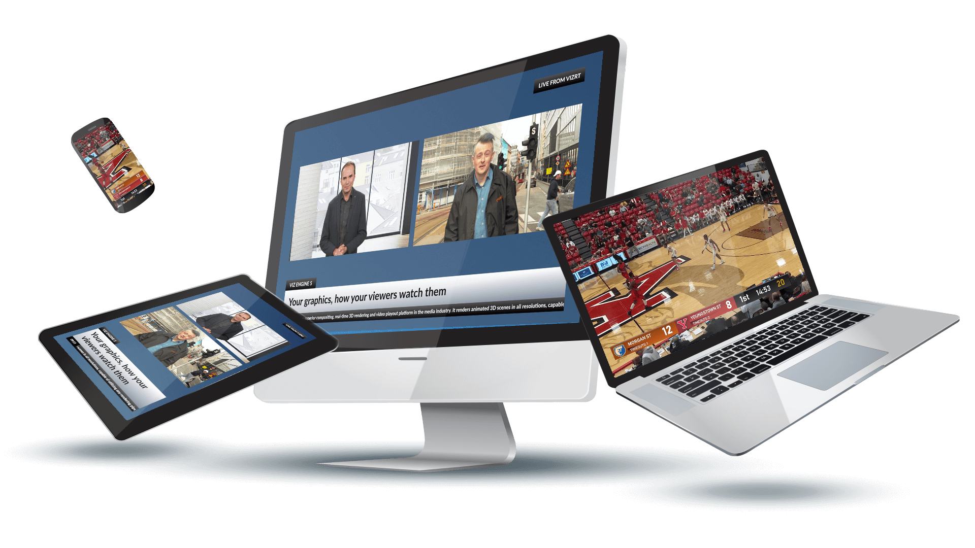 The solution is to take an Adaptive Storytelling approach, allowing user-generated rules-based automation to adapt content to target platforms without swallowing additional resources. Which is why with the launch of Viz Engine 5 we are introducing Adaptive Graphics; single workflow-multi-platform content delivery that automatically adjusts resolution and format to support specific display devices and effectively enables graphic artists to create once and publish multiple times.