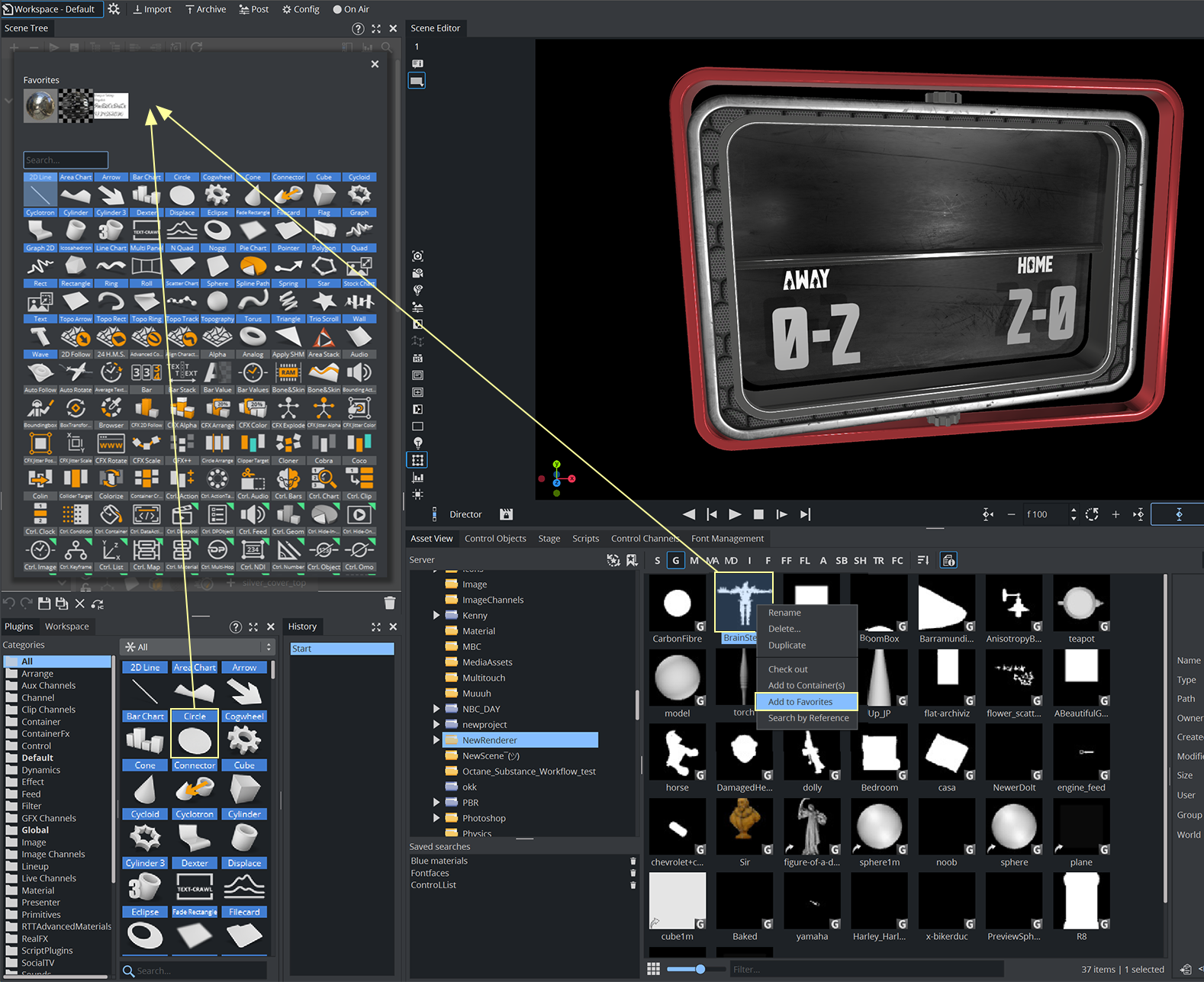 For quicker access to items that are used often, you can add items to the Favorites section within the Plug-in Panel. This section is located on the top and allows quick access to your most common used assets.