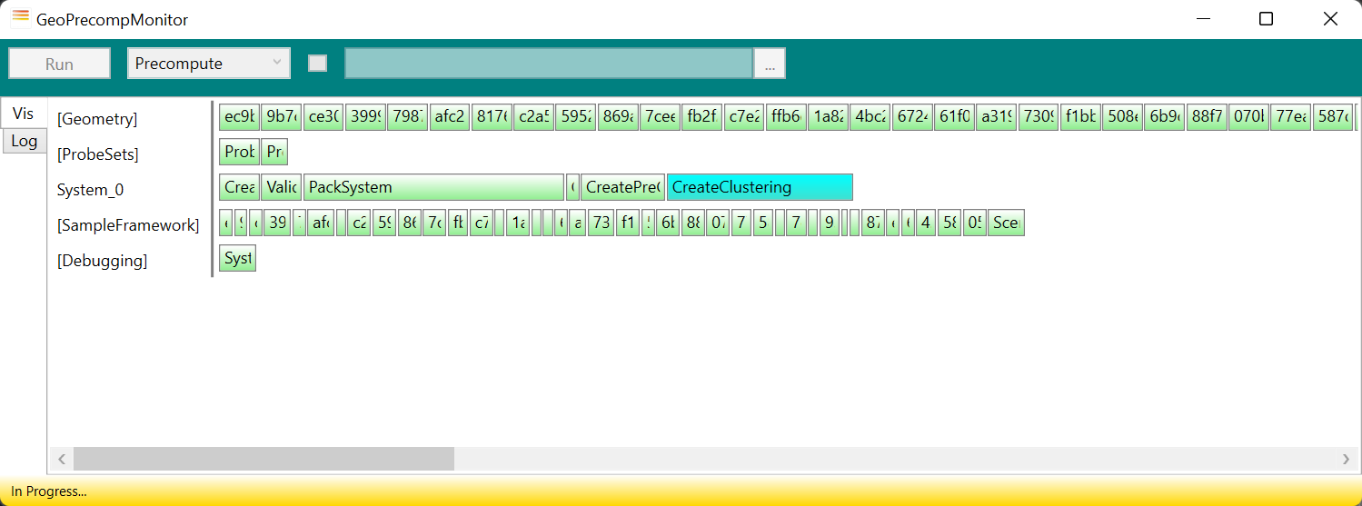 2: The Geo Precompute Monitor during the lightmap baking process. |