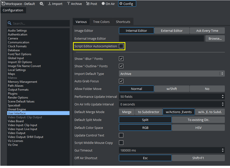 Autocompletion can be enabled/disabled under Config > User Interface > Script Editor Autocompletion.