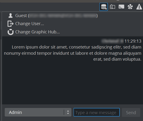 Select a logged-in user or a group, type your message and click on Send. To switch your user, click on Change user... and select a new user.