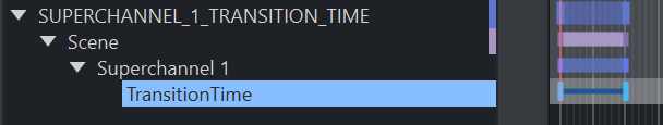 Once the shader is assigned to the Super Channel as a transition shader, a new director with the name SUPERCHANNEL_i_TRANSITION_TIME (where i is the Super Channel index) is automatically created to animate the transition time.