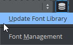 Selects the font family and style to apply to the selected text. The list of the font shows all of the font faces currently stored in the connected Graphic Hub.