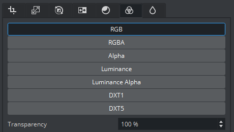 Transparency allows to change the level of transparency if the image has an alpha channel (for example, RGBA).