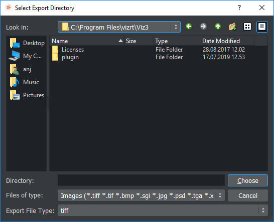 Open the Select Export Directory panel and select the folder where the image should be exported to.