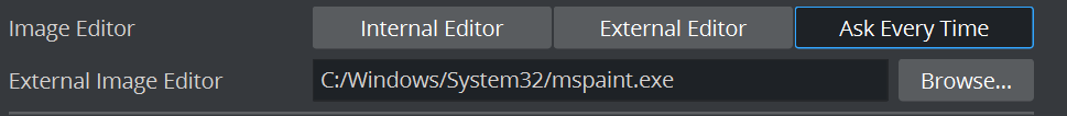 External Image Editor: Determines the filepath to the external image editor.
