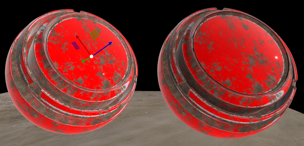 No Normal Map (left) vs Normal Map applied (right) |