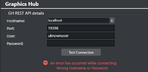 Use the Test Connection button to verify the connection to a Graphic Hub database, with the given credentials.