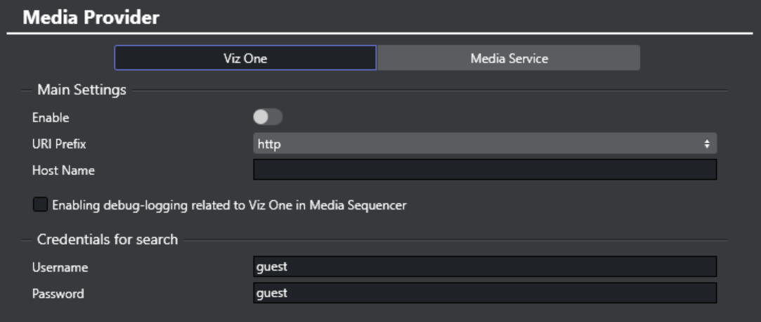 These global Viz One settings are used by all channels sharing the same Media Sequencer, and define the Viz One connection to the Media Sequencer.