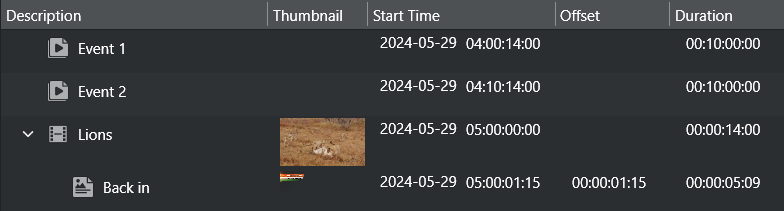 The Duration or Offset of the events in the playlist changes simultaneously.Close the window.