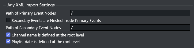 Path of Primary Event Nodes: Path to the element that contains the primary events.