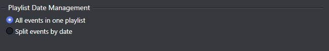 • All events in one playlist: Allow only one continuous playlist exist per channel. Regardless of time and on-air date, all events are included in the imported playlist. This setting is recommended.