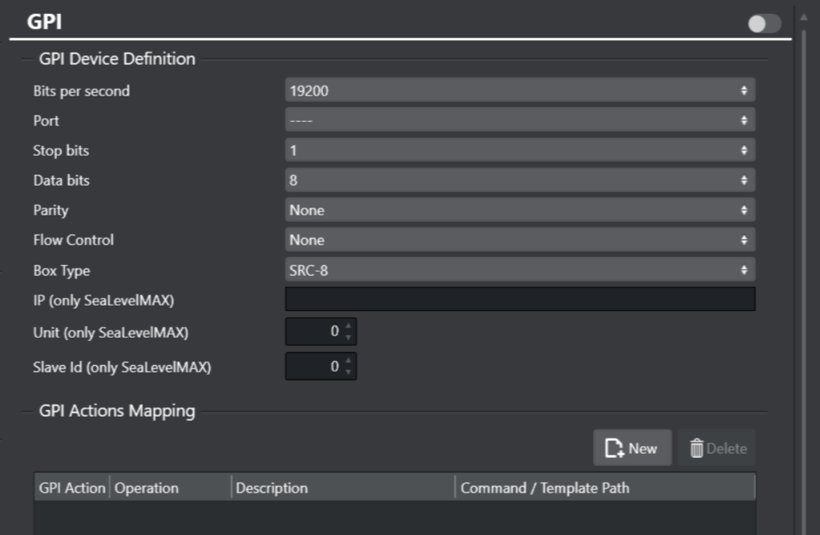GPI is a type of trigger that does not relate directly to a playlist event. A list of commands allows you to define what happens when a playlist is received from an external device.