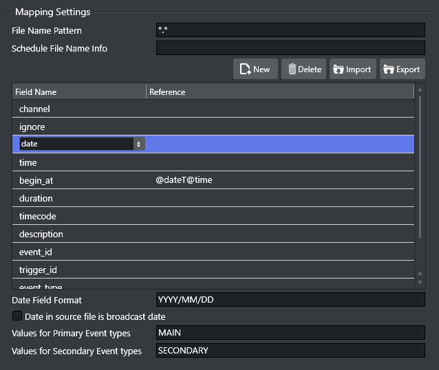 Date in source file is broadcast date: Check this box if the date in the source file is the same as the broadcast date. Otherwise, leave it unchecked.