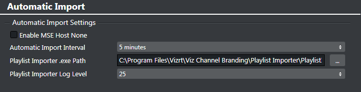 Playlist Importer is installed on the Media Sequencer machine by default.Playlist Importer Log level: Sets the log level of the Playlist Importer. See the Playlist Importer’s Startup Parameters.