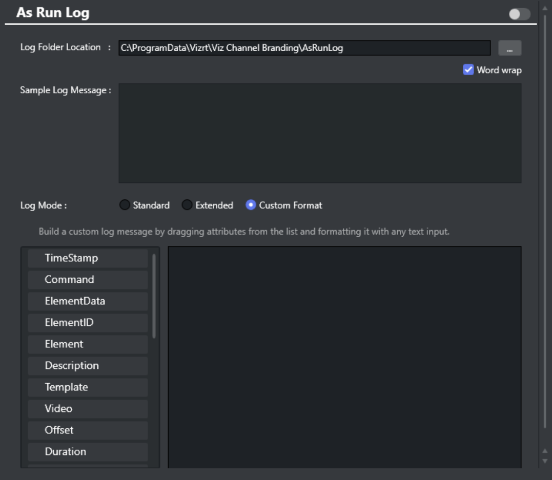 Use Extended or Custom Format when there are As Run logging requirements not covered in Standard mode.