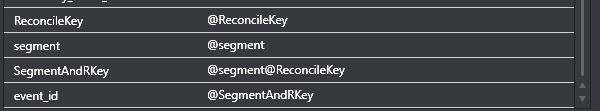 Info: The fields used for concatenation (segment and ReconcileKey in the screenshot above) must be defined before the concatenating field (SegmentAndRKey).
