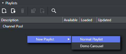 2. Click the Playlists pool. All existing playlists for the selected channel are displayed.