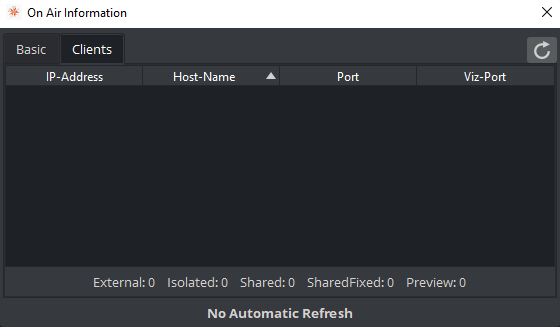 In the Clients tab, all connected clients are shown with the IP address, host name and Viz Port.