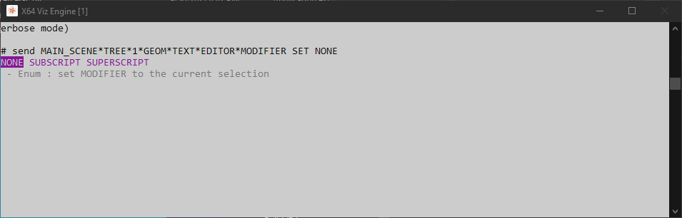 Introduced in Viz Engine version 5, the console offers and autocompletion feature when sending commands directly the console. To use this, hit the TAB key on any location.