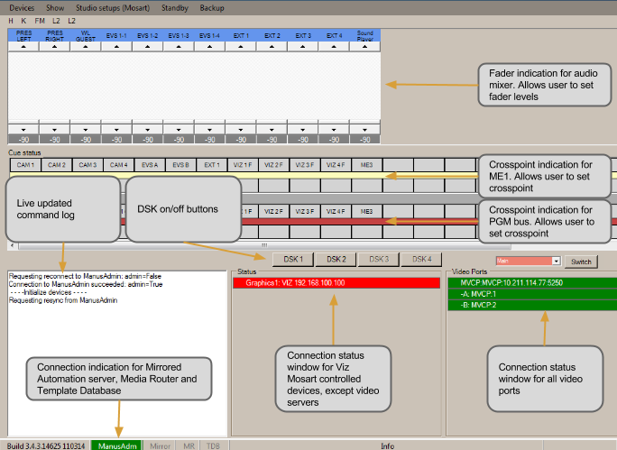 On the fly commands can then be issued directly to each device through the Viz Mosart GUI, or as pre-programmed operations driven by the rundown of a connected NRCS.