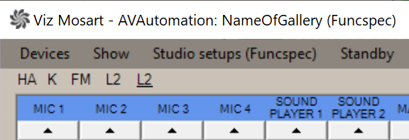 Studio setups: Selects the template set to use for the current show. These template sets are not available for selection: