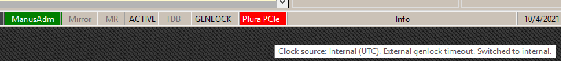 If the external clock source is not reliable (shown in red on the AV Automation status bar), the frame clock is driven by the internal clock source: