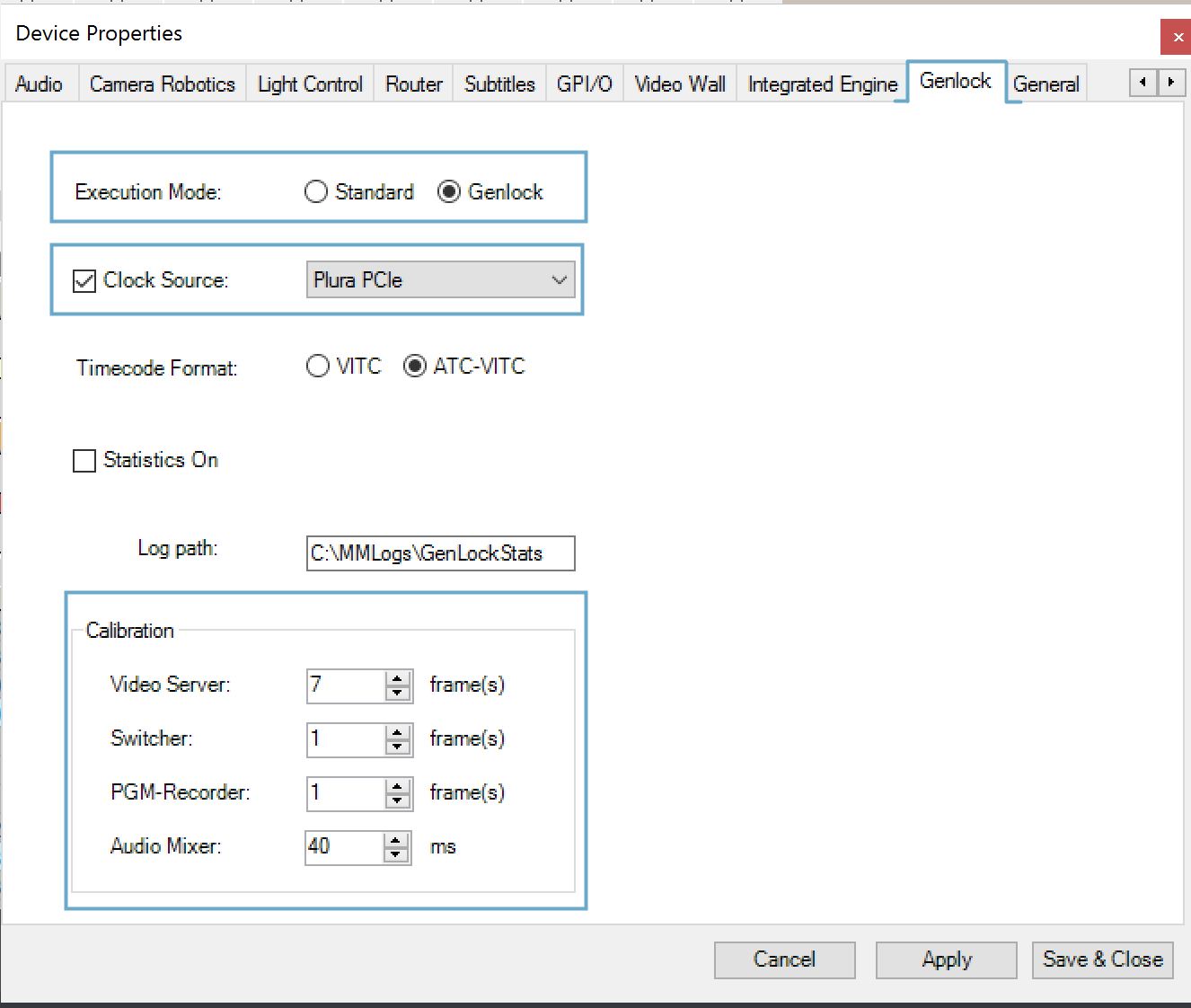 For Viz Mosart to function in frame accurate mode, a calibration process has been created to better understand the timings associated with the gear being operated.