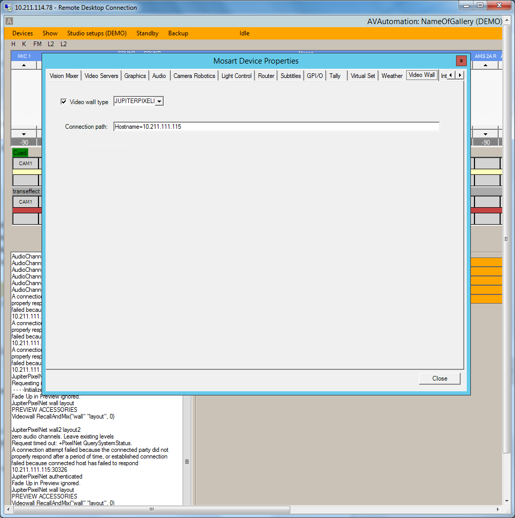 The router protocol is named JUPITERPIXELNET. Configuring the PixelNet video wall interface requires the following parameters: