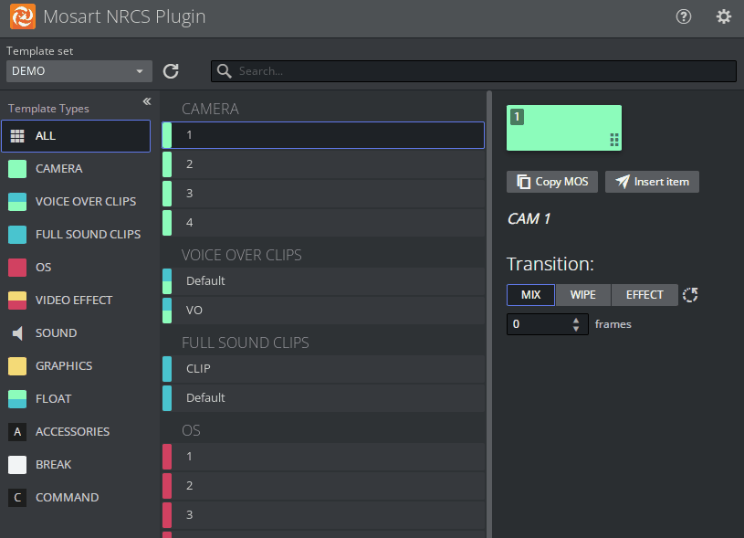The NRCS Plugin delivers the functionality previously provided by the legacy Viz Mosart ActiveX Plugin.