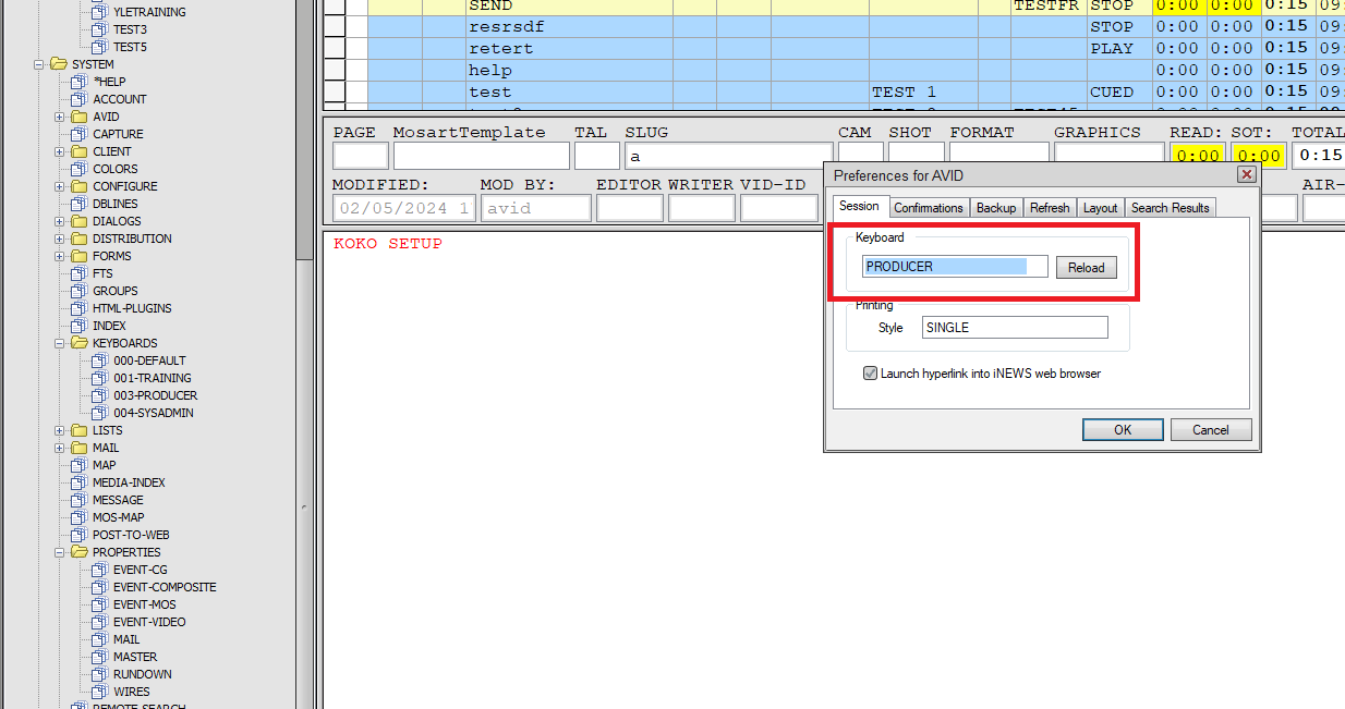 3. KeyStrokeHome: iNews client shortcut to reach top of rundown. Default: ^{HOME}.