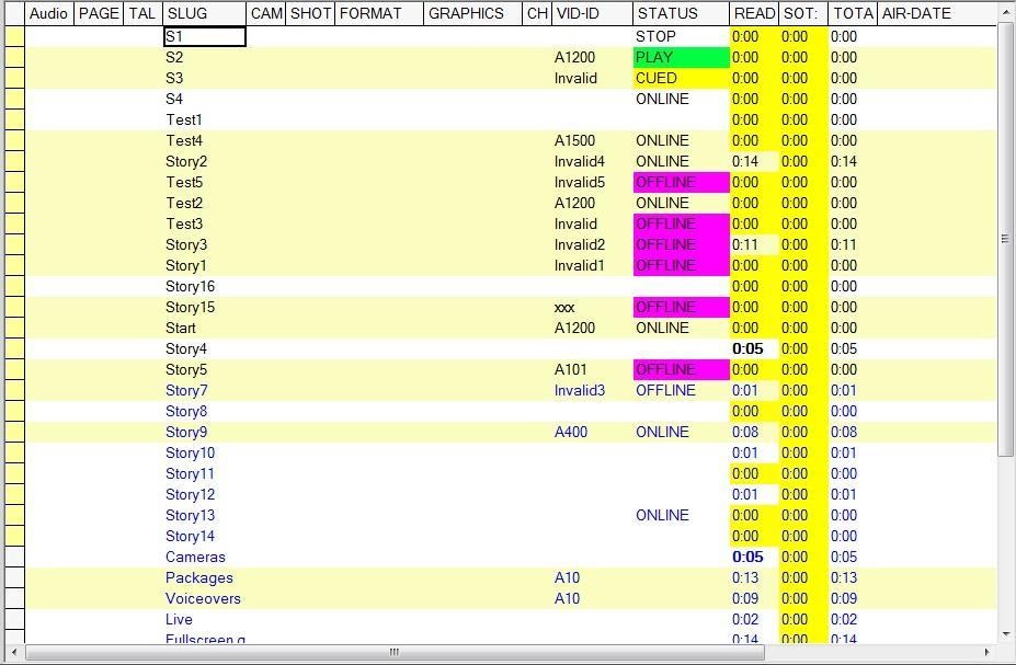 When the rundown is played, the following information displayed in the iNEWS columns: