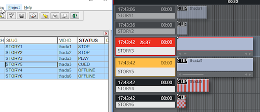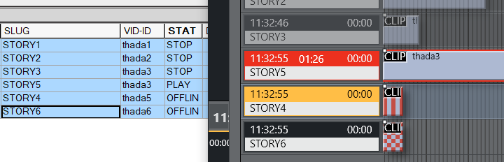 If the timeline is not running and the item following the current item cued is a clip, the story will be updated with CUED status and the duration of the clip.