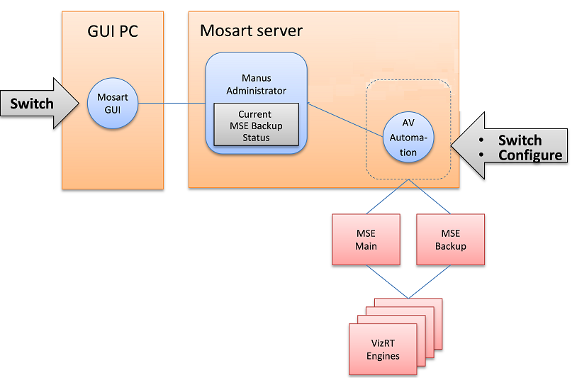 It is possible to select the main or backup Media Sequencer, from Viz Mosart. See Media Sequencer#Switching Media Sequencer from the Viz Mosart GUI.