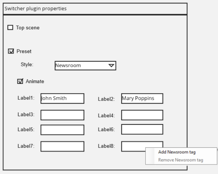 AvConfig.xml) file.Preset names correspond directly to the presets defined in the switcher scene: