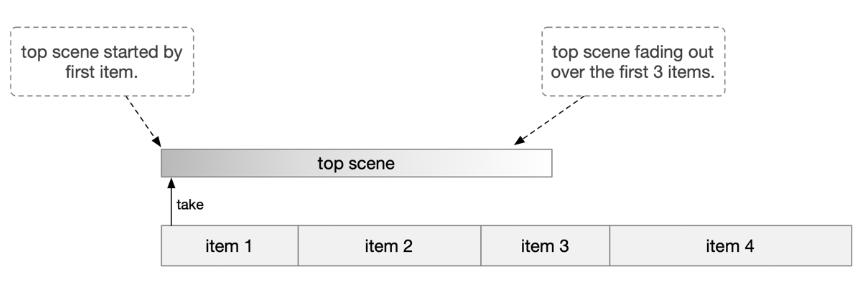 This is typically achieved through a mix with rate > 0, a wipe transition, or an effect transition (using effect scenes) specified on the Viz Mosart template, in the story item provided by the NRCS or from the Viz Mosart UI.