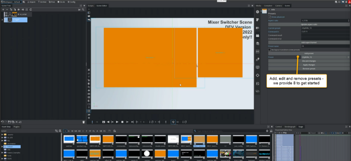 To simplify the show design process, sample scenes are provided by Vizrt.