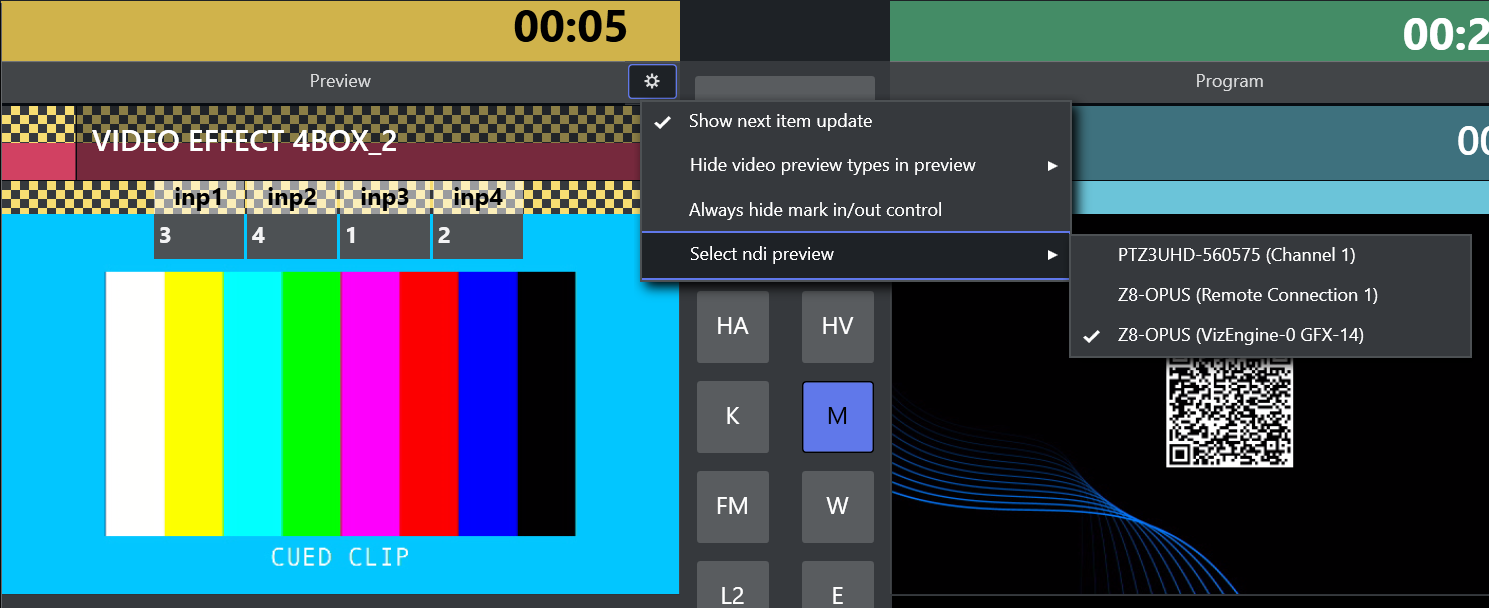 As soon as a clip is cued as next item, the GFX channel scene loads the paused clip. This updates the NDI stream of the Mosart UI.