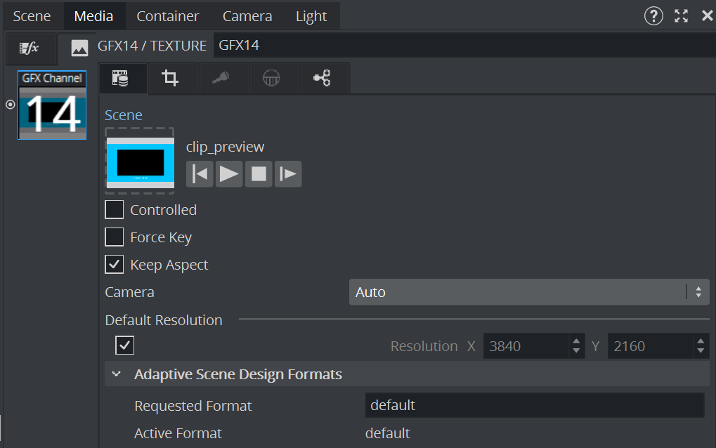 These clips and GFX scenes are always bound to the main superchannel 1 (SC1).