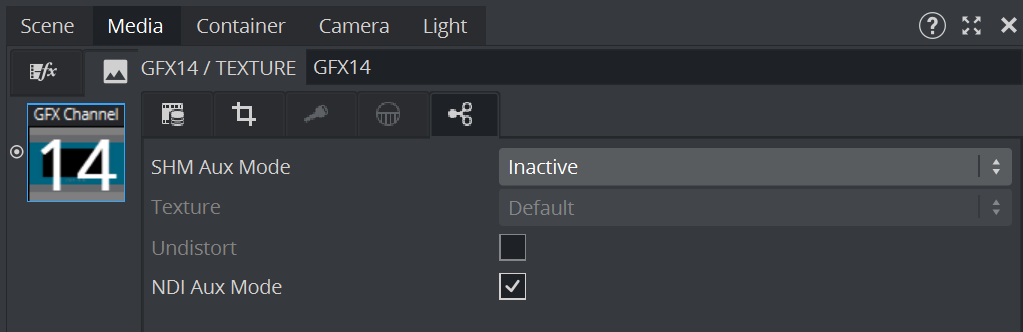 To activate the NDI output of GFX channel 14, activate NDI Aux Mode.