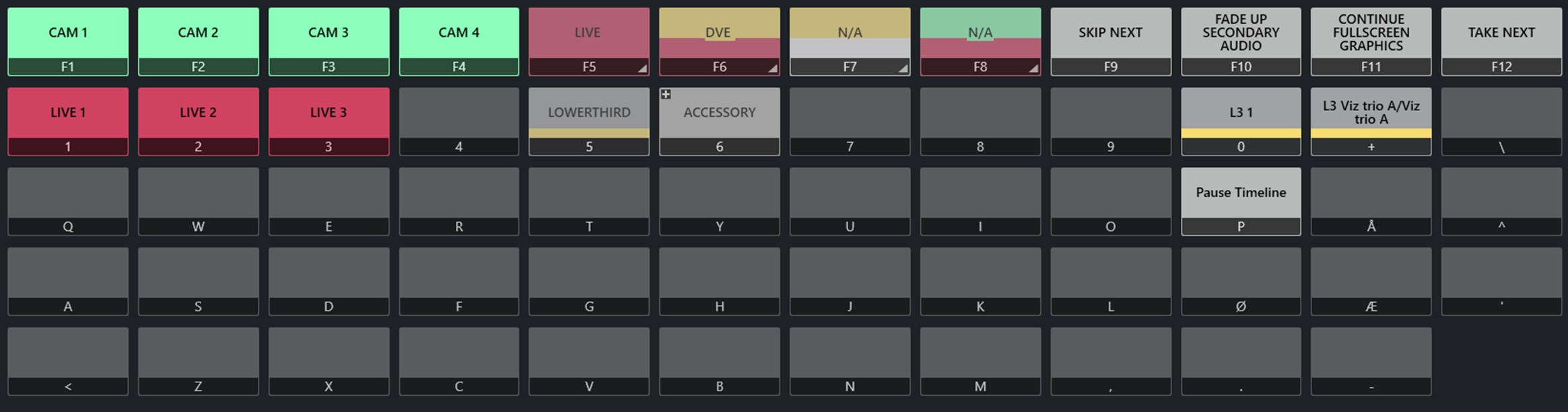 Info: The example above shows how the Viz Mosart UI mimics a standard computer keyboard with the key label shown under the rectangles. Depending on your keyboard, key labels may differ.