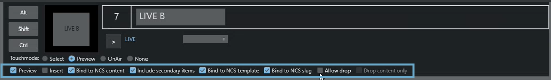 Text | The naming on the button displays the text entered in the Keyboard Shortcuts Editor. Alternatively, if the button is bound to some NRCS content, it can display the corresponding NRCS slug. | |