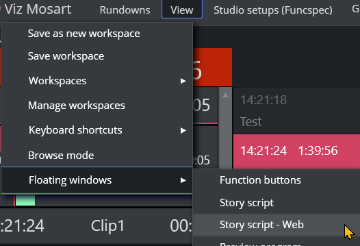 As a useful extension to a floating window, you can also view the current rundown details as a scalable read-only display of the Story info and Timeline, in a separate Mosart Web App.