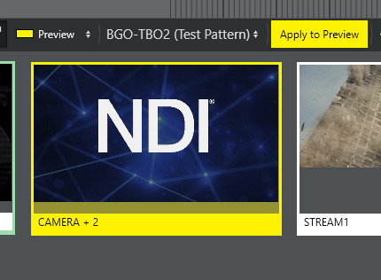 If Program or Preview is selected, clicking Apply to Program will assign the NDI stream to the program window.