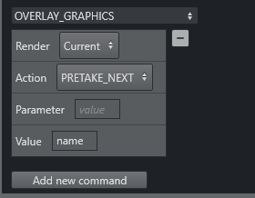 All Overlay Graphics control commands share the Render parameter. This parameter can be set to send the given command to a specific engine, or to engines which currently have active graphics on air.