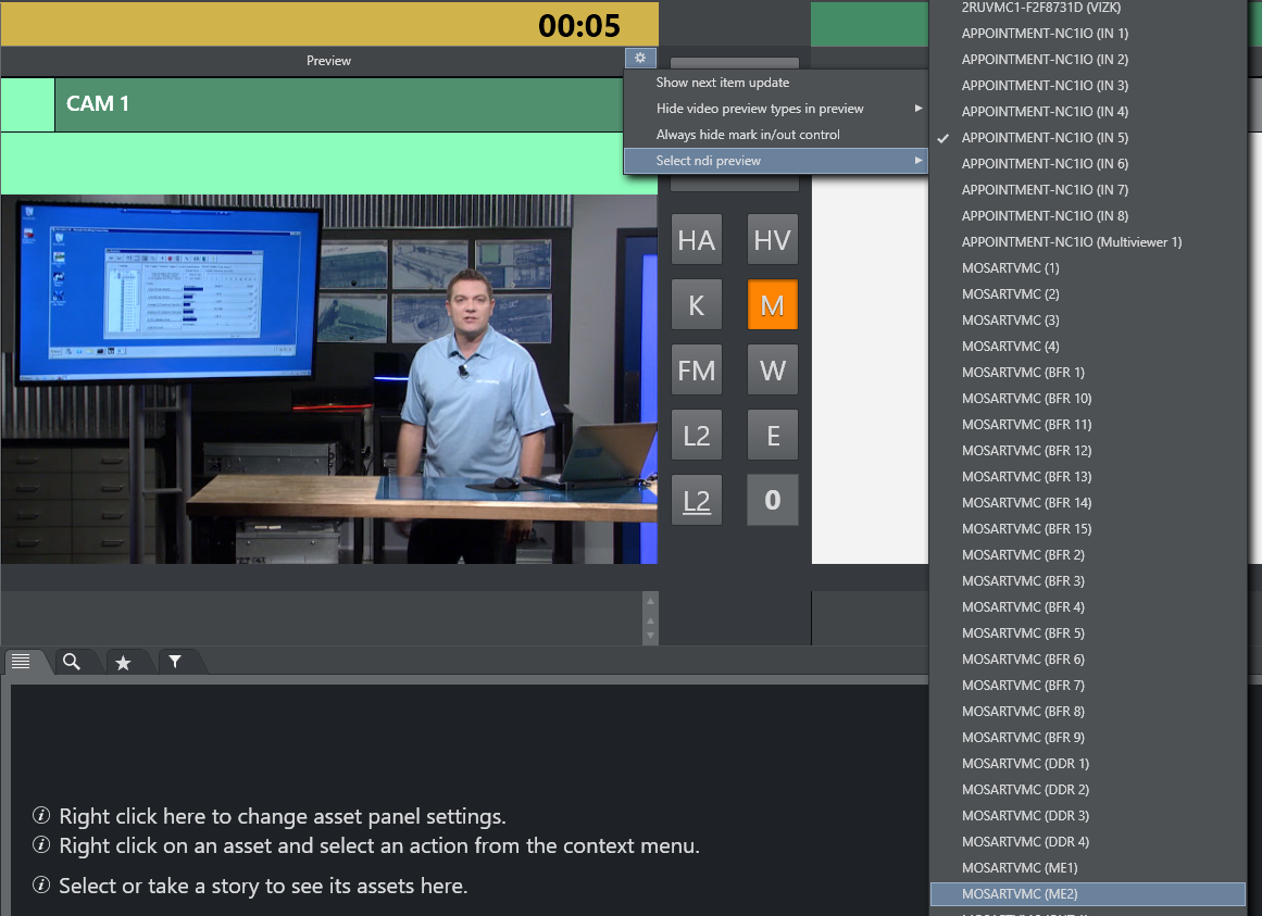 Select ndi preview: If any NDI sources are available on the network it is possible to choose one of the sources from this menu.