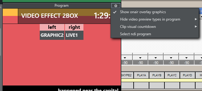 Show onair overlay graphics: When this is checked, overlay graphics are displayed in the Program window when they go on air.