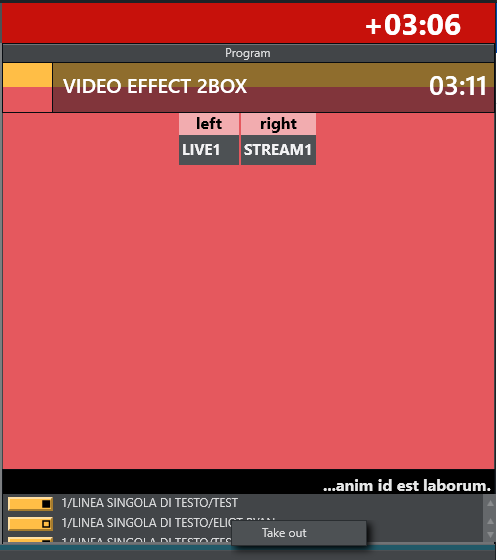 Overlays can be taken off air by right-clicking them in the list and selecting Take out.